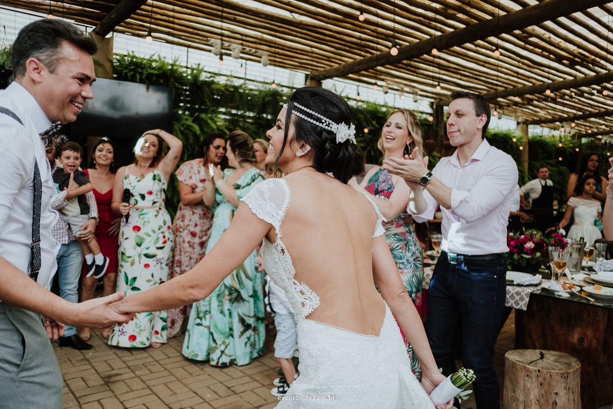 Maquiagem e cabelo: Délie Oliveira (WM Vintage Club) | Vestido: Eliane Warmeling | Acessórios: Mãos de Flor | Terno: VG Dandis | Buffet e Doces: Eloisa Buffet | Salão/local festa: Hukka Garden | Decoração e Buquê: Quintal Flores | Música cerimônia: Vivian Moreno | Lembrancinhas: Plantinha Suculenta / Chinelinho (Mercado Livre) | Celebrante: Carlos Eduardo | Assessora: Dani Ciol (Amo Organizar) | Bartender: Brumas Coquetelaria | Iluminação e Dj: Factory Som & Luz